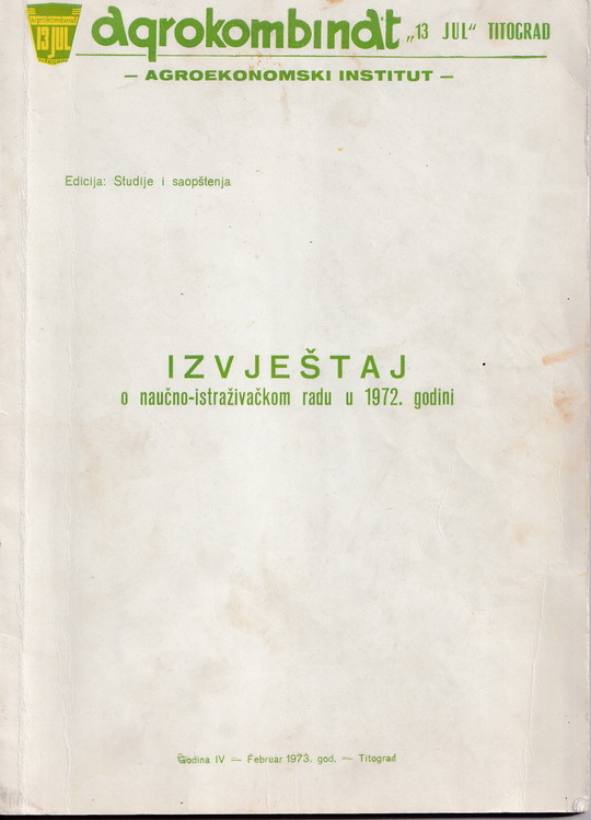 Izvještaj o naučnoistraživačkom radu u 1972. godini, Agroekonomski institut, Titograd