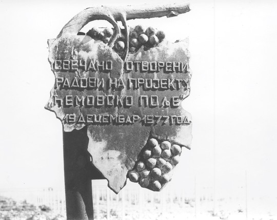 Inicijator projekta „Ćemovsko polje” Đorđije Pajković, sadnjom prvog kalema sorte vranac, simbolično je obilježio početak realizacije projekta, 1977.