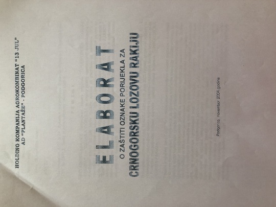 Elaborat o zaštiti oznake porijekla za Crnogorsku lozovu rakiju, 2004.