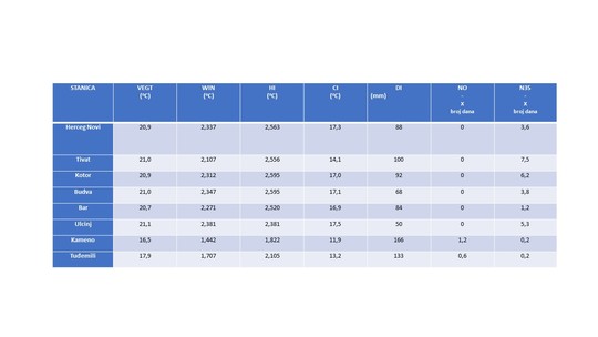 Klimatski podaci za karakteristike vinogradarskog regiona Crnogorsko primorje