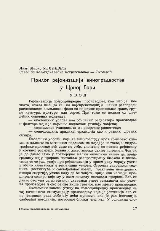 Prilog rejonizaciji vinogradarstva u Crnoj Gori, 1959.