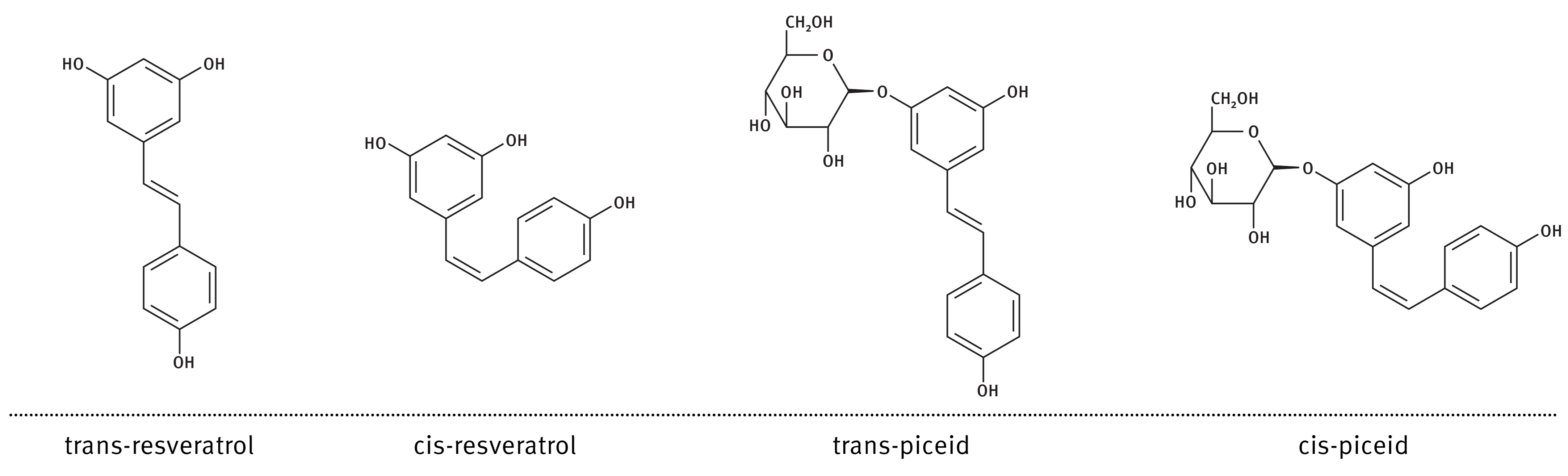 Strukture slobodnih i glikozilovanih trans i cis resveratrolnih oblika