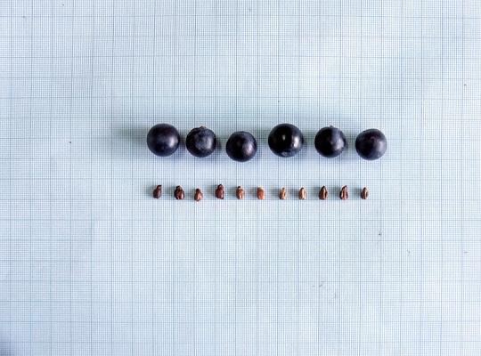 Sjemenka, generativni organ vinove loze, nastao iz sjemenog zametka poslije oplođenja. U bobicama sorti nalaze se 1–4 sjemenke. U bobicama → besjemenih sorti vinove loze nema sjemenki ili su vrlo rijetke. Na vršnom dijelu sjemenke nalazi se udubljenje (urez). Od udubljenja, preko leđne strane, do kljuna prolazi brazda, koja dijeli sjemenku na dvije uzdužne polovine. Na leđnoj strani sjemenke brazda se proširuje i obrazuje ovalno udubljenje, u kojem se nalazi halaza, kroz koju u sjemenku ulaze sprovodni snopići hranljivih materija. Kod većine sorti sjemenke su ovalno-kruškastog oblika, a boja zrelih sjemenki je od svjetlije do tamnosmeđe. Mogu biti dužine 3–9 mm, a širine 3–5 mm. Sjemenke se, po veličini, dijele na: veoma kratke, kratke, srednje duge, duge i veoma duge. Sjemenke mogu biti: male (masa 100 sjemenki je manja od 2,5 g), srednje (masa 100 sjemenki je 2,5–3,5 g) i velike (masa 100 sjemenki je veća od 3,5 g). Sjemenka je važan organ za → botanički opis sorte, jer prisustvo sjemenke u bobici, dužina, težina, oblik, masa i kljun sjemenke, kao i položaj halaze predstavljaju karakteristična obilježja sorte, koja se koriste za determinaciju i → ampelografski opis sorte.