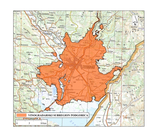 Vinogradarski subregion (podregion/vinogorje) Podgorica, najveće crnogorsko vinogradarsko geografsko područje, u sastavu vinogradarskog regiona (rejona) Crnogorski basen Skadarskog jezera. Obuhvata centralni dio regiona, od Skadarskog jezera na jugu do Bjelopavlićke ravnice na sjeveru i između Kuča na istoku i Bjelica na zapadu. Površina subregiona je 48.778,77 ha. Subregionom su obuhvaćene KO: Beri, Bijelo Polje, Bioče, Blizna, Botun, Brežine, Budza, Buronje, Cerovica, Cijevna, Crnci, Cvilin, Dajbabe, Dinoša, Doljani, Donja Gorica, Donji Kokoti, Donji Zatrijebač, Draževina, Đurkovići, Farmaci, Fundina, Goljemadi, Golubovci, Gornji Zatrijebač, Gostilj, Gradac, Grbavci, Gruda, Hoti, Klopot, Liješnje, Lutovo, Mahala, Masline, Mataguži, Mrke, Pelev Brijeg, Podgorica I, Podgorica II, Podgorica III, Progonovići, Radeća, Rijeka, Rogami, Stanjevića Rupa, Stari Trabojin, Tološi, Trmanje, Tuzi, Ubli, Velje Brdo, Vranj, Vranjina, Vrbica, Vukovci i Vuksanlekići. U okviru subregiona postoji šest užih vinogradarskih područja (→ vinogradarskih oaza): Vranjina, Lužnica, Pelev Brijeg, oaza Klopot, Trimojevići i Bratonožići.