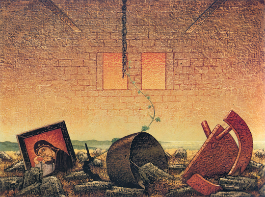 Motiv vinove loze kao simbol života i obnove – Miodrag Latković Late, „Napušteno ognjište”, 1986.