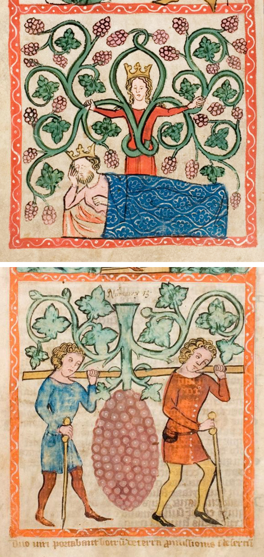 Jesejevo stablo, prikazano kao vinova loza, i grožđe Kanana, koje nose Isus Navin i Halev