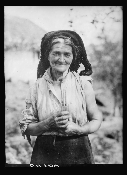 Starica koja gostima donosi rinfuzno kućno vino. Misija američkog Crvenog krsta, 1920.