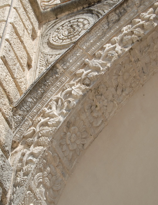 Motiv vinove loze sa grozdovima i ptice koje ih kljucaju na kružnom obodu ulazne galileje Katedrale Sv. Tripuna