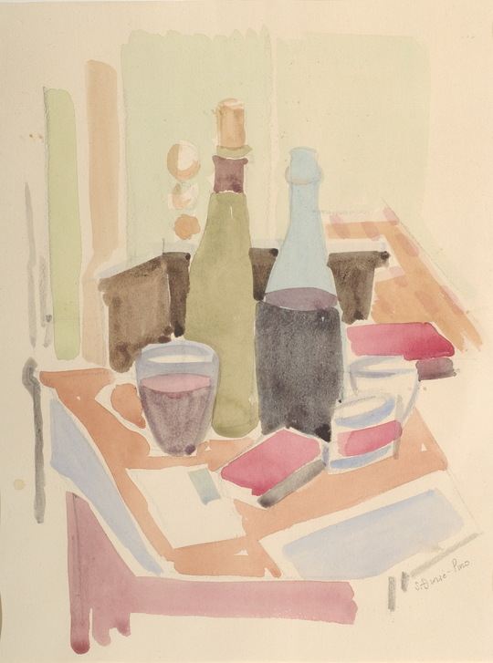 Slobodan Puro Đurić, akvarel, „Kafanski sto”, 1963.