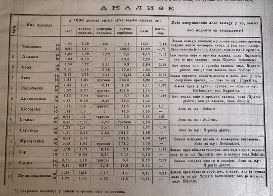 Analiza zemljišta vinogradarskih područja Crne Gore, rađena u cilju odabira odgovarajuće lozne podloge, 1891/1892.