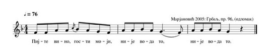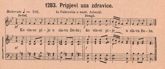 LITERATURA: V. Karadžić, Srpske narodne pesme: knjiga prva, u kojoj su različite ženske pesme, Beč, 1841; V. Karadžić, Srpske narodne pesme: knjiga druga, u kojoj su pesme junačke najstarije, Beč, 1845; V. Karadžić, Kovčežić za istoriju, jezik i običaje Srba sva tri zakona, Beč, 1849; F. Kuhač, Južno-slovjenske narodne popievke, Zagreb, 1881; L. Kuba, Na Černé Hore: cesty podniknuté za účelem sbíráni národních písni roku 1890 a 1891, Prag, 1892; M. Vasiljević, Narodne melodije Crne Gore, Beograd, 1965; V. Matjan, Igre i pesme Dobrote i Škaljara, Titograd, 1984; G. Ćetković, Gradske pesme iz stare Podgorice, Podgorica, 2002; Z. Marjanović, Narodna muzika Grblja, Grbalj, 2005; Z. Marjanović, Narodna muzika Boke Kotorske i Crnogorskog primorja, Beograd, 2011; D. Sedlarević, Tradicionalne igre i pjesme Kolašina, Kolašin, 2014; J. Primorac, Z. Marjanović, Pjesme dalmatinske iz Boke Ludvika Kube (1907. g.), Perast, 2015; A. Radoman, A. Čirgić [prir.], Pjesmarica Andrije Balovića [druga polovina XVIII i početak XIX veka], Cetinje, 2019; Z. Marjanović, Kora'ljica srebrom zakovana: poj od Budve i Ljute prema rukopisu Mijata Sabljara iz 1854. godine, Budva, 2020.