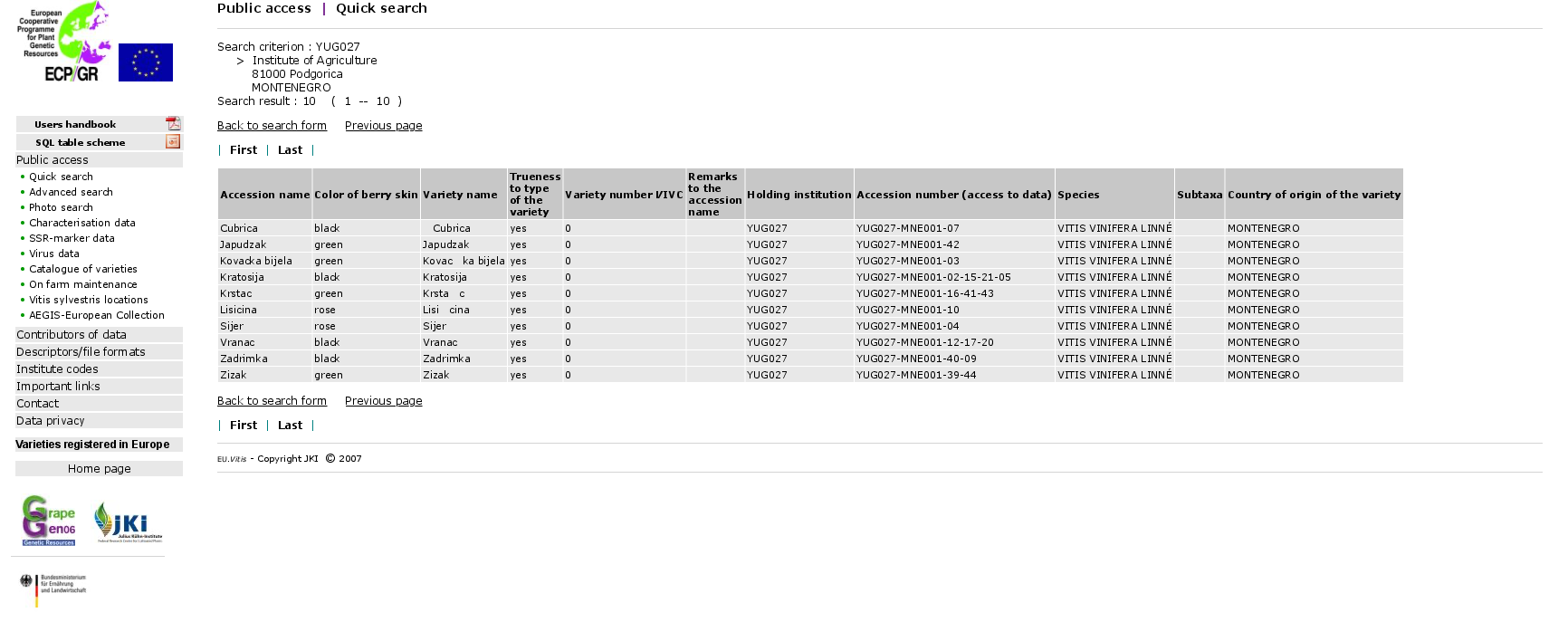 Crnogorske sorte vinove loze u Evropskoj bazi podataka za rod Vitis