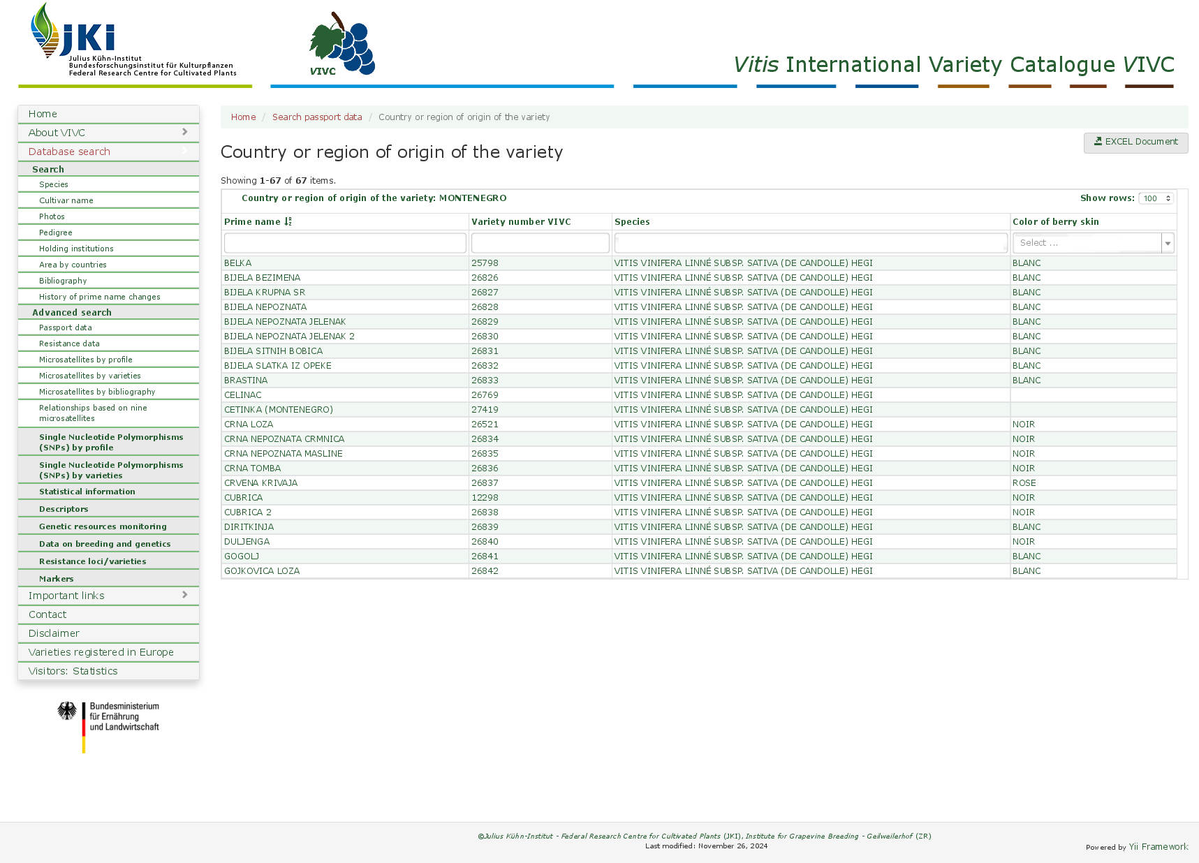 Lokalne, autohtone sorte vinove loze u Crnoj Gori uključene u VIVC katalog