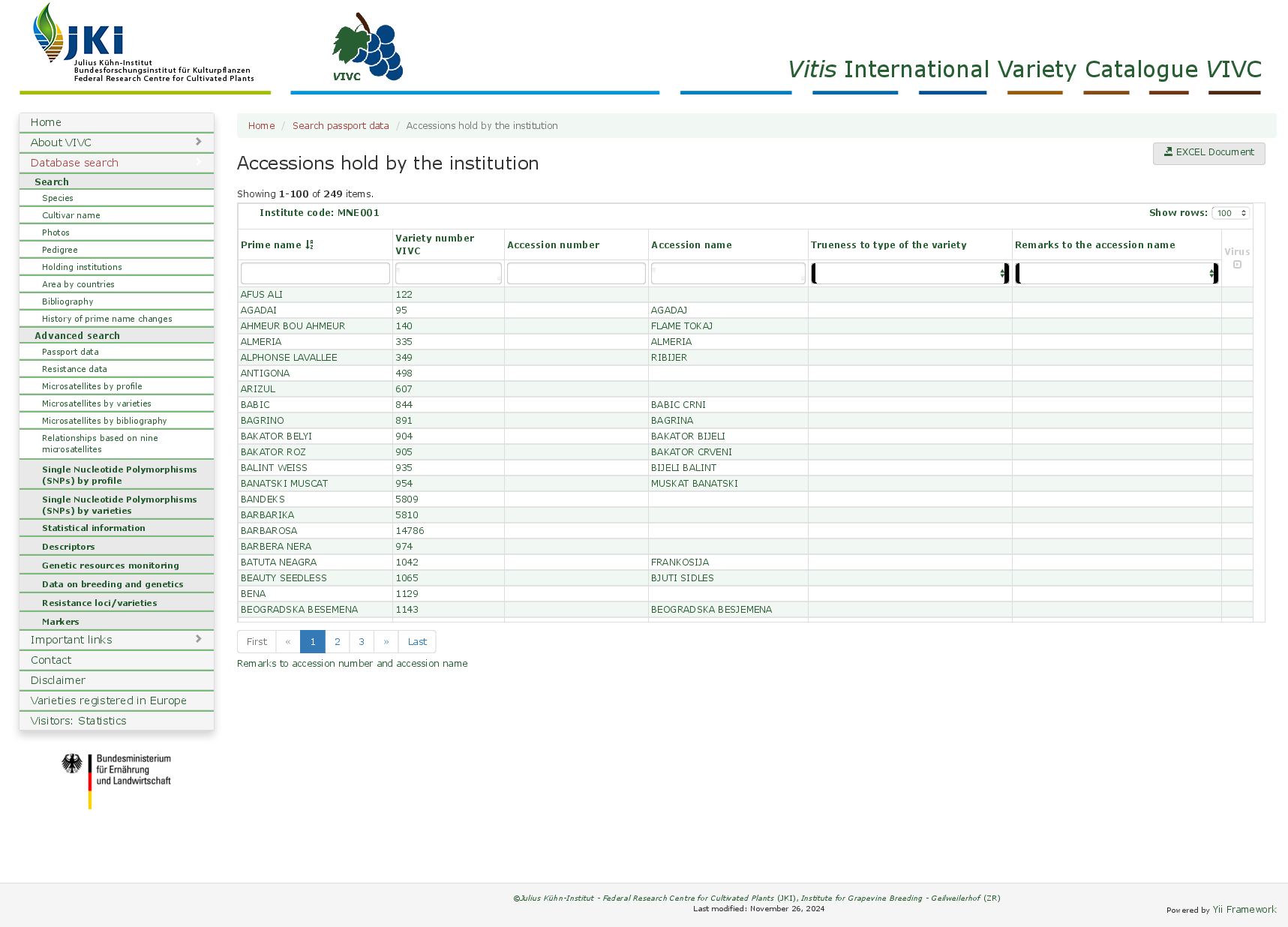 Sorte iz ex citu kolekcije Biotehničkog fakulteta, uključene u VIVC katalog (250)
