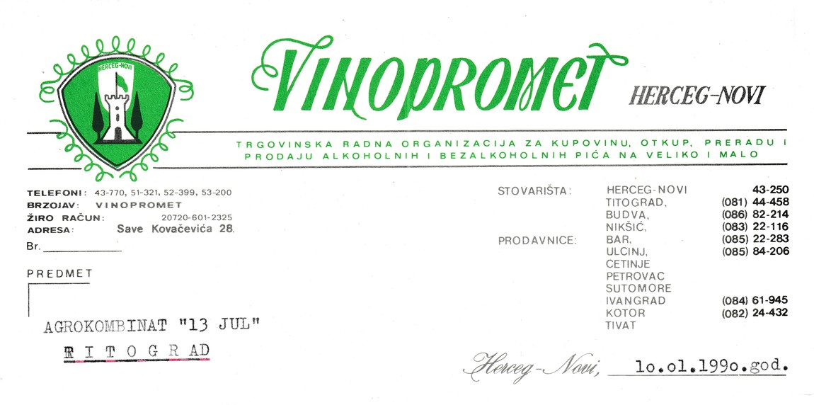 Logotip, memorandum firme „Vinopromet”, Herceg Novi