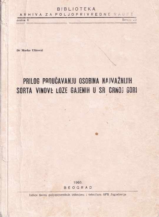 M. Ulićević, „Prilog proučavanju osobina najvažnijih sorta vinove loze gajenih u SR Crnoj Gori”, Beograd, 1966.