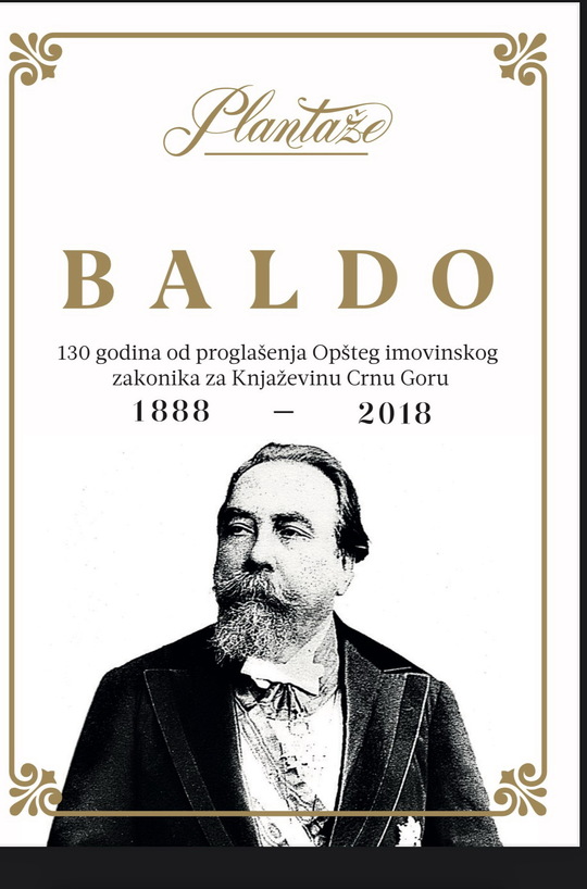 Vino „Baldo”, proizvedeno povodom Jubileja „130 godina od proglašenja Opšteg imovinskog zakonika za Knjaževinu Crnu Goru 1888−2018”, „13. jul − Plantaže” AD Podgorica, 2018.