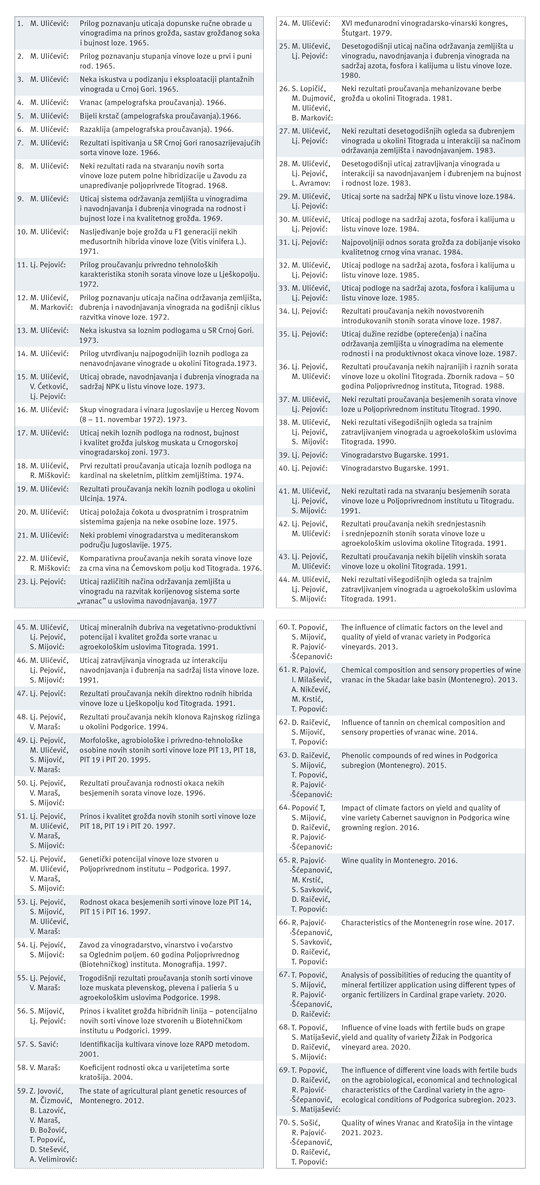 Naučni radovi iz oblasti vinogradarstva i vinarstva objavljeni u časopisu „Poljoprivreda i šumarstvo”, 1965–2023.
