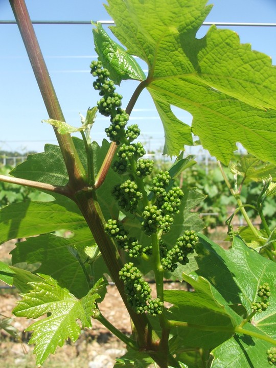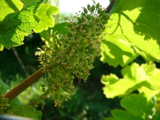 Cvijet, generativni organ vinove loze, koji se sastoji iz čašice, krunice, prašnika i tučka. Čašicu čini pet zakržljalih sraslih čašičnih listića, koji formiraju cvjetnu ložu. Krunica ima pet kruničnih listića, koji čine cvjetnu kapicu. U cvijetu se nalaze 4–7 prašnika i tučak. Skup većeg broja cvjetova čini cvast. Kod sorti vinove loze postoje tri osnovna tipa cvijeta: 1) morfološki i funkcionalno hermafroditan cvijet ima normalno razvijene prašnike i tučak, te se kod ovih cvjetova dešava samooplodnja – ovaj tip cvijeta ima najveći broj gajenih sorti vinove loze (više od 95%); 2) morfološki hermafroditan, a funkcionalno ženski tip cvijeta ima razvijeniji tučak, prašnici su kraći od tučka, savijeni prema dolje, a polen je po pravilu sterilan – kod ovih cvjetova ne može doći do samooplodnje, već se oprašuju polenom neke druge sorte (sorta razaklija, bijeli čauš); 3) morfološki hermafroditan, a funkcionalno muški tip cvijeta ima dobro razvijene prašnike i zakržljali tučak – ovaj tip cvjeta imaju pojedine divlje vrste i hibridi, koji vrlo rijetko donose plod. Kod → divlje loze (dvodoma biljka), pojedine biljke imaju muške, dok druge imaju ženske cvjetove. Sortama s funkcionalno ženskim tipom cvijeta neophodno je obezbijediti odgovarajuću sortu oprašivača s kojom se poklapa u vrijeme cvjetanja, u cilju kvalitetne oplodnje i prinosa grožđa. Cvijet je važan organ za → botanički opis sorte, jer su obilježja cvasti i pol cvijeta karakteristična obilježja, koja se koriste za determinaciju i → ampelografski opis sorte.